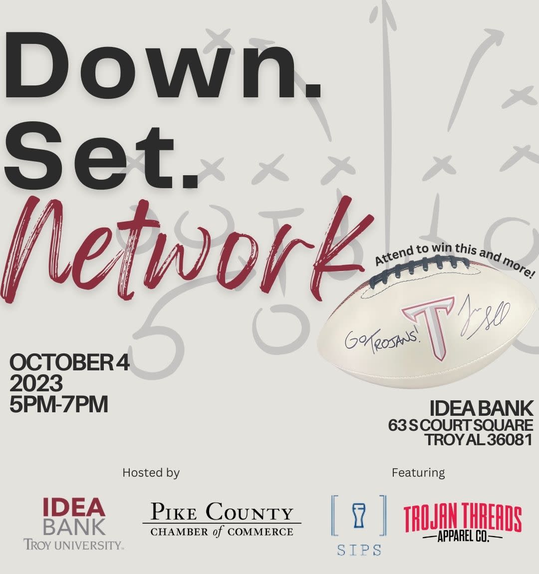 Here is the game plan! RSVP to receive two free drink tickets. Enjoy a tailgate spread from Sips and shop Troy gear from Trojan Threads. Win exclusive Troy prizes! Celebrate the Troy Trojans 2023 Homecoming with other local business owners and leaders.